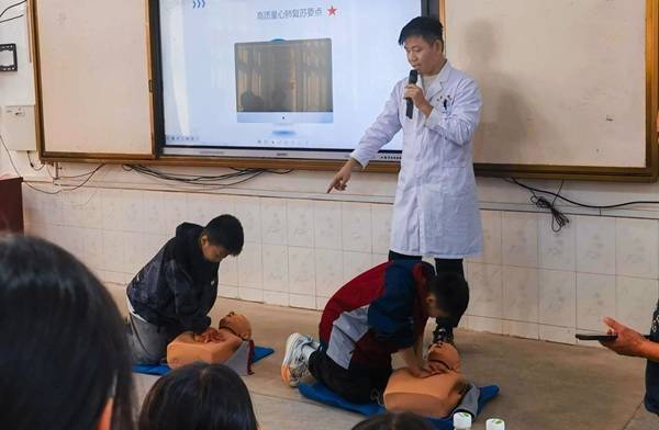 当天,在宛田瑶族乡民族学校 ,急诊医学科副护士长王振海还为百名中小学生集中进行急救技能培训和实操。“原来,不仅是医护人员能救人,我们掌握急救技能,关键时刻也能救命。”同学们纷纷表示收获满满。