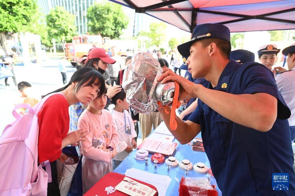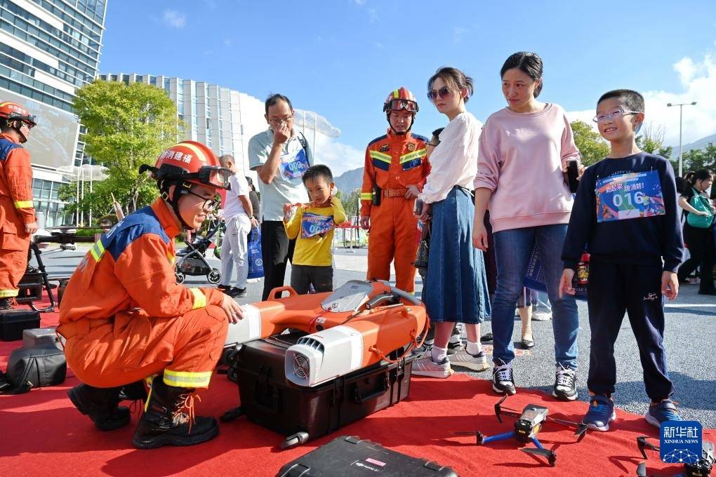 11月8日,消防员向市民介绍救援装备。