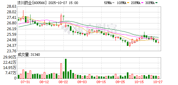 北京商报讯(记者丁宁)10月27日晚间,济川药业(600566)发布2025年三季报显示,公司前三季度实现营业收入39.32亿元,同比下降32.27%;归属净利润10.22亿元,同比下降46.27%。