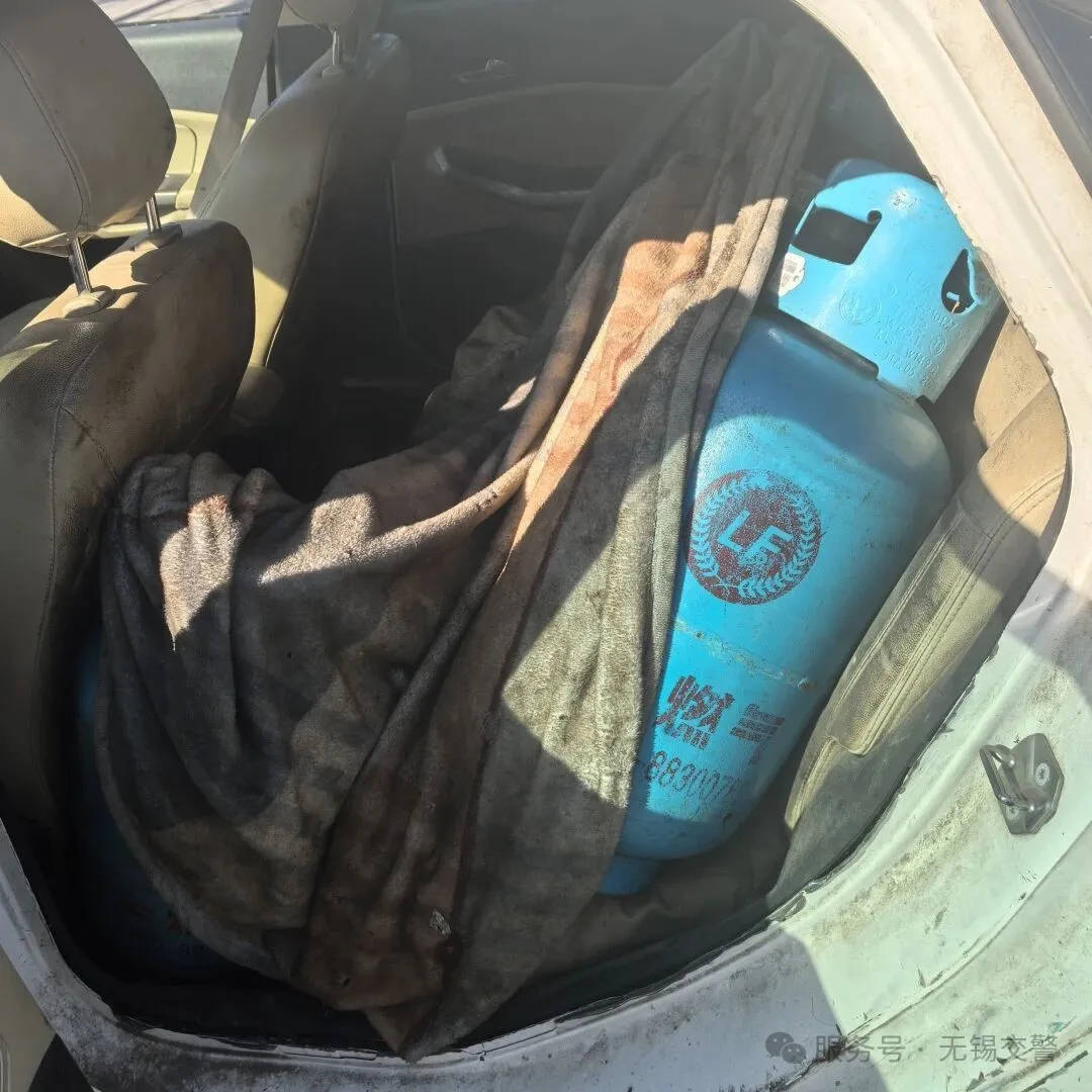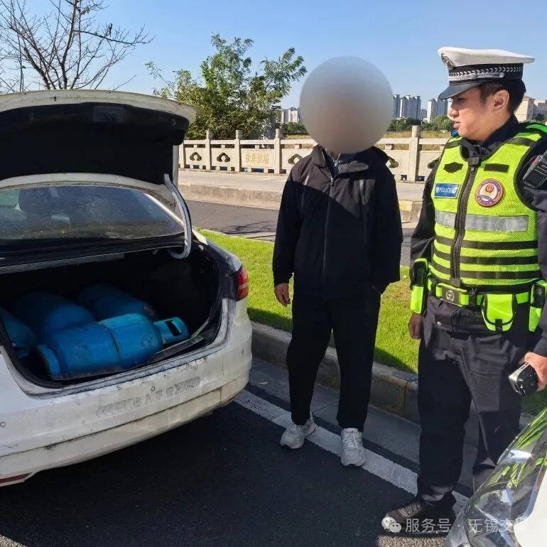 10月29日上午,新吴交警在飞凤路锡梅路查获一辆小型轿车涉嫌非法运输黑燃气,车内装载燃气瓶8个。目前,案件正在进一步处理中。