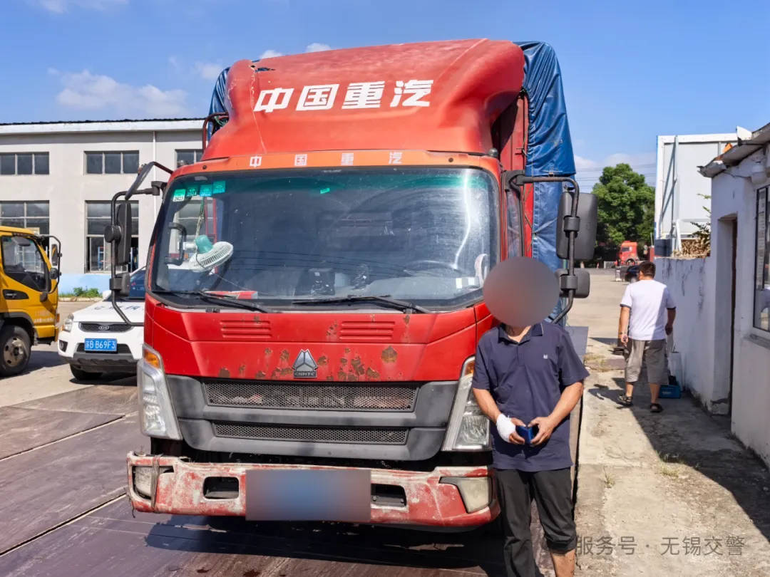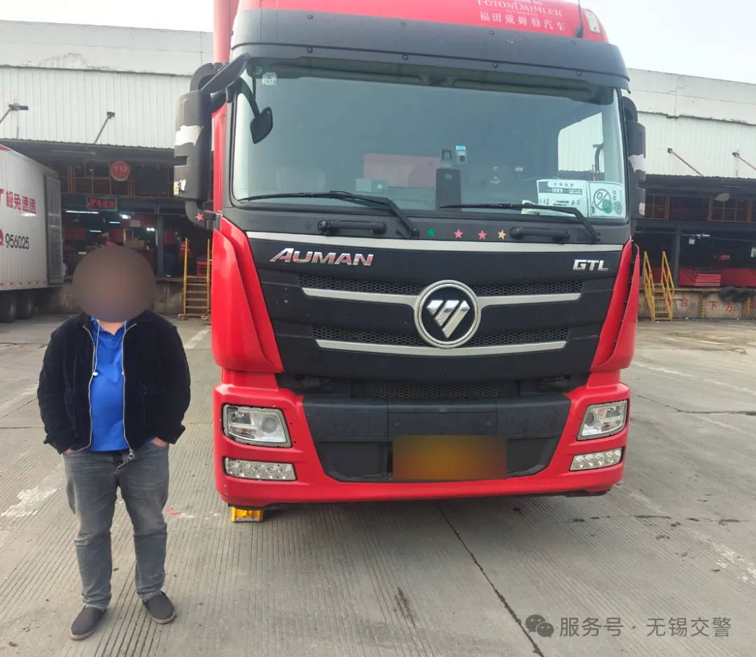 11月1日早上,新吴交警在新友南路极兔快递门口巡逻时,查处一辆重型半挂牵引车涉嫌疲劳驾驶。