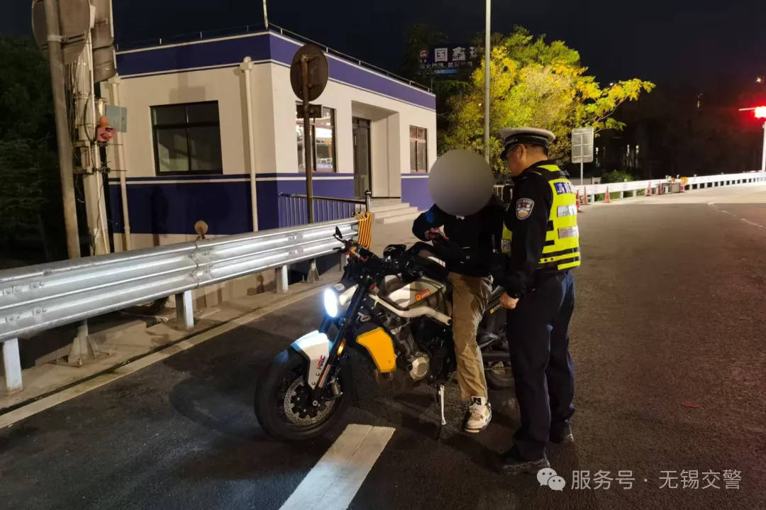 10月27日晚上,高速交警在无锡西收费站开展整治期间,查获一辆摩托车涉嫌违反禁令标志上高速。民警依法对驾驶人处以罚款100元、驾驶证记1分,并对其进行安全教育。